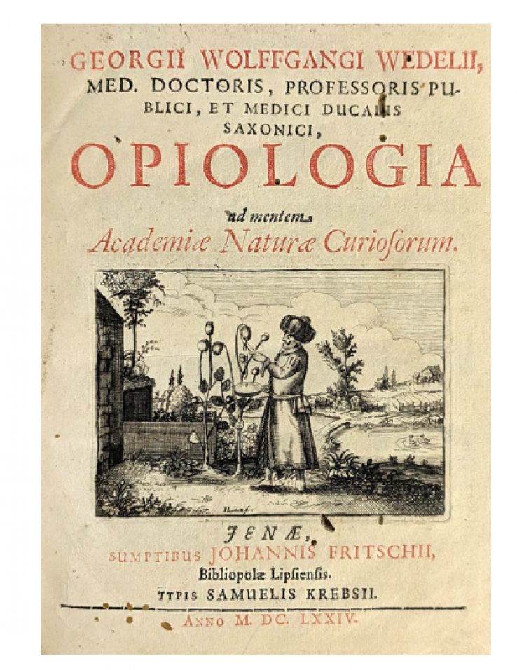 First edition of this rare and early treatise on the pharmacological and therapeutic aspects of opium. The large title vignette one of the earliest illustrations of scoring and bleeding the poppy.